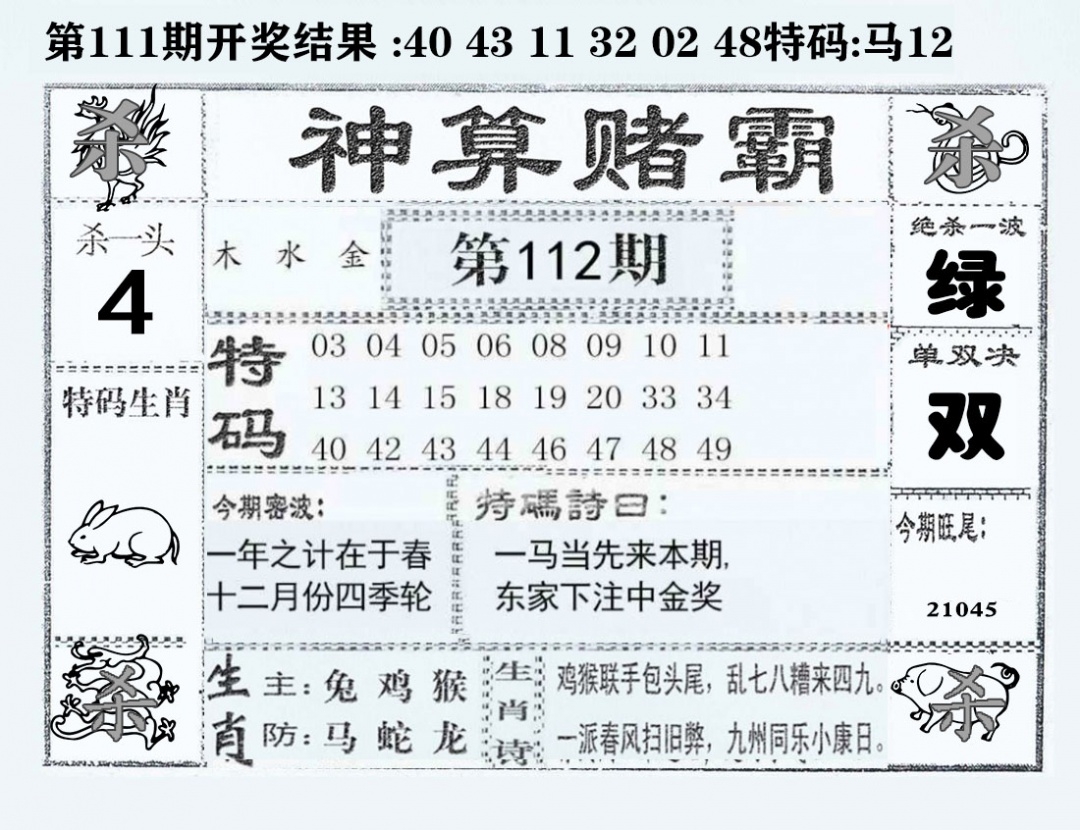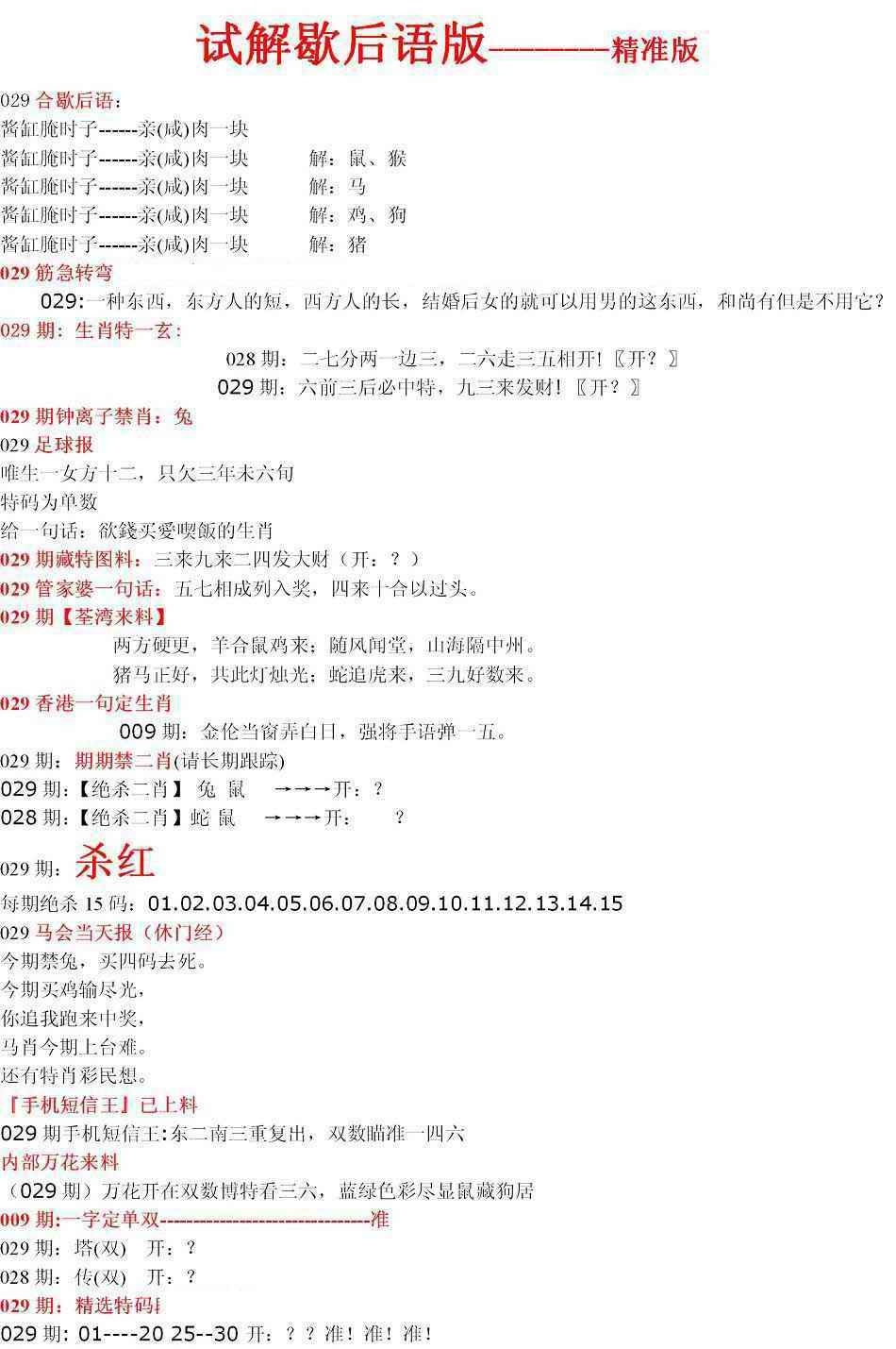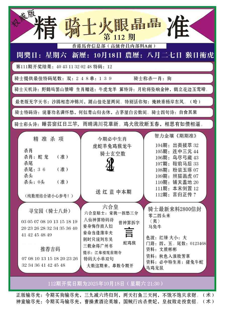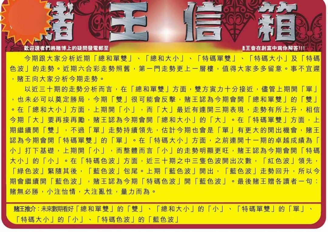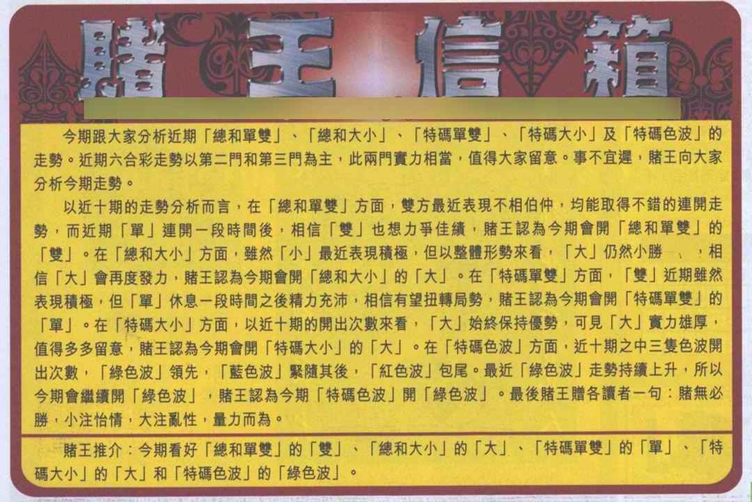 马经王牌料(荐)