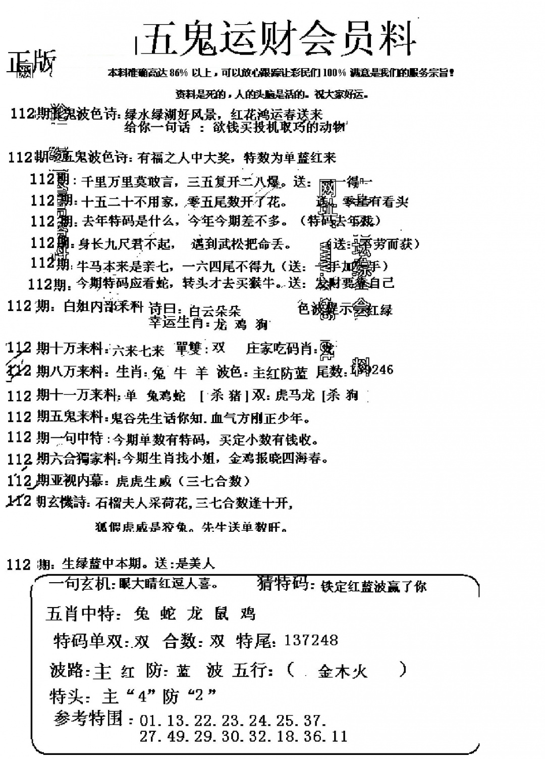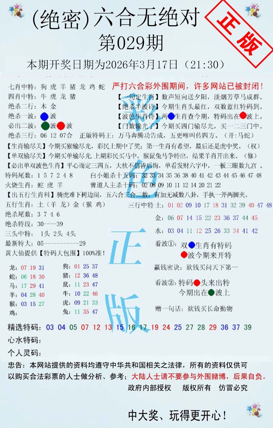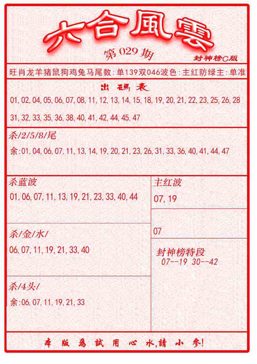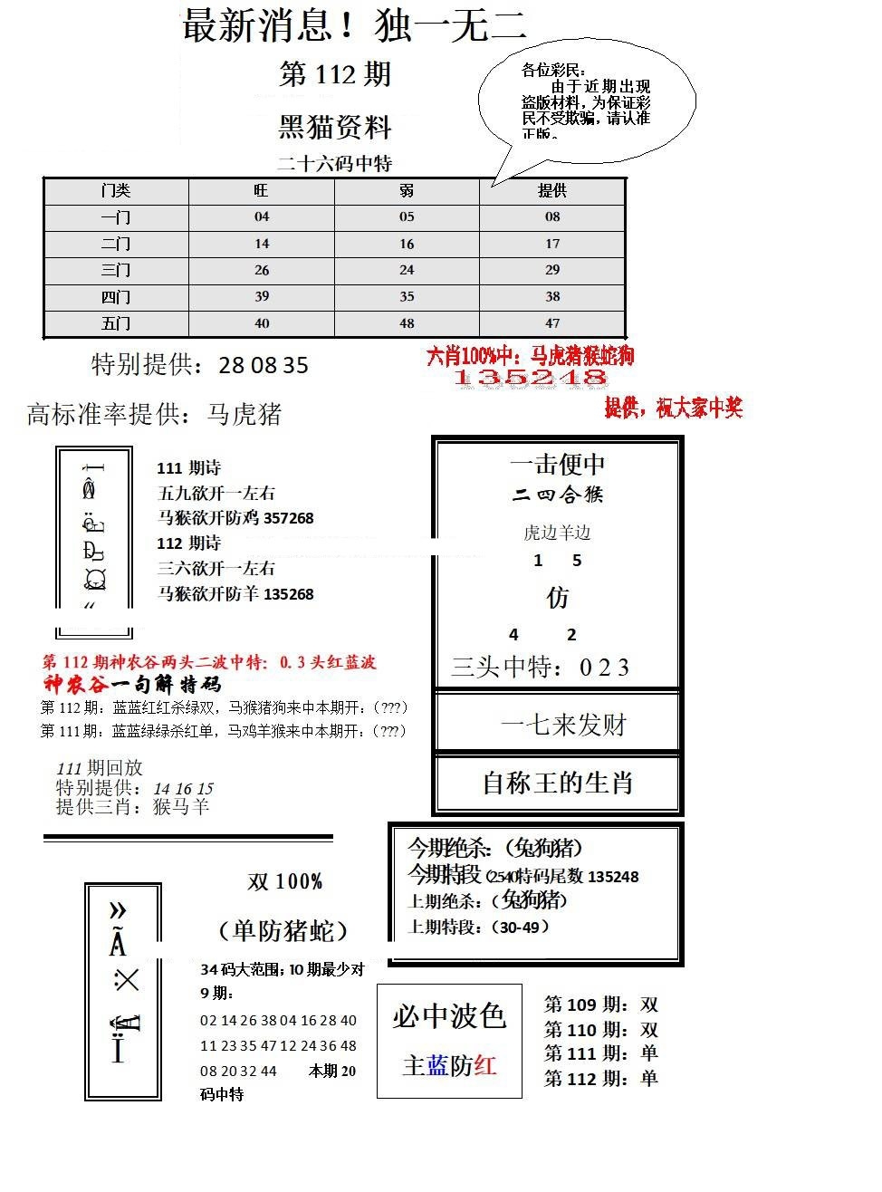 马经王牌料(荐)