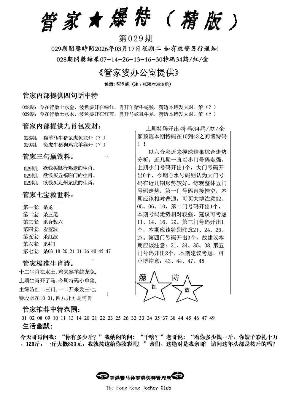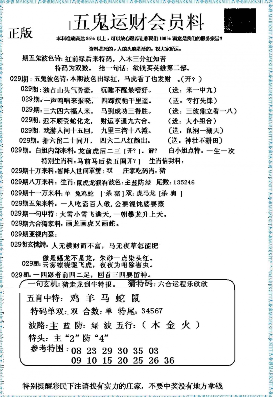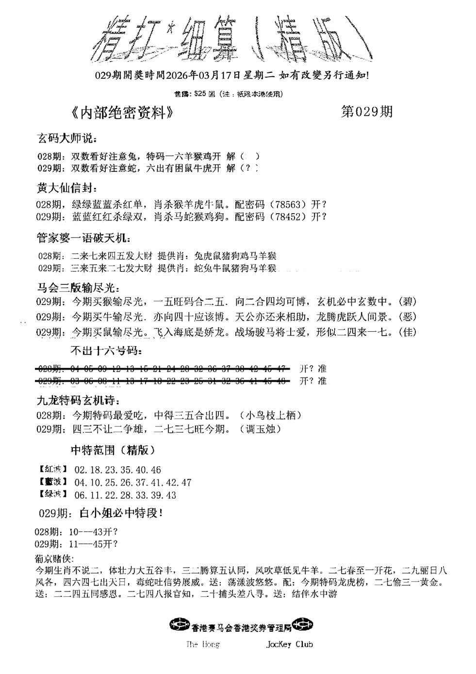马经精版料(荐)