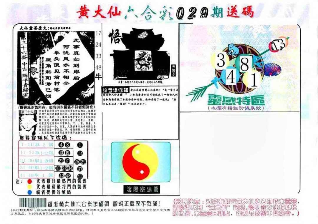 黄大仙灵码B